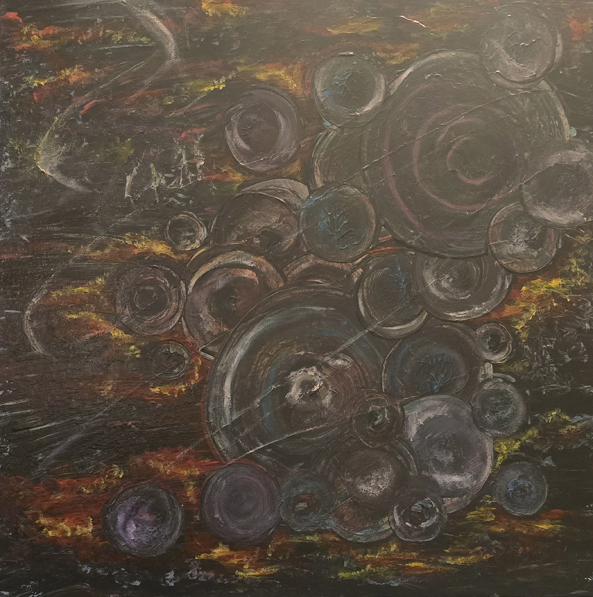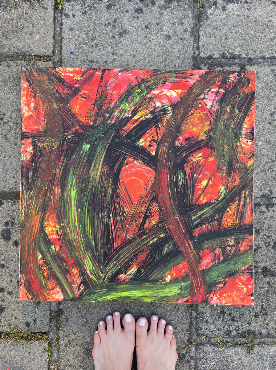 Wenn ich male, setze ich die Kunst frei. Ich halte den Raum, bis Farben und Strukturen ihre eigene Ordnung finden – ein Prozess des Überlagerns, bis die energetische Essenz greifbar wird. In meinen Texten ist es ähnlich: Ich dekonstruiere Mechanismen und erstarrte Dogmen, um den Weg für echte Freiheit freizumachen. Dabei folge ich den natürlichen Zyklen: Nichts hier ist statisch. Ein Gedanke geht raus, wenn er brennt, und er darf sich mit mir verändern, wachsen und überarbeitet werden.